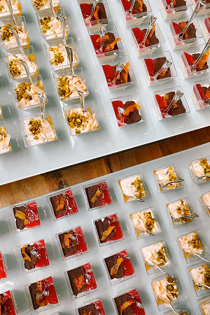 We catered a client mixer at Playa Studios in Culver City. With a social media and influencer focus, the catering had to be beautiful and handheld so that people would be free to use phones and move around. The vibe was LA with a mix of beachy so we went with a slider bar, empanada bar, and dessert bar.