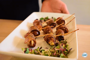 Bacon wrapped dates with goat cheese and marcona almond. Presented passed on toothpicks