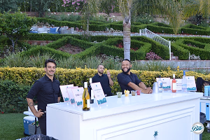 Bartenders pouring drinks at an outdoor bar in the gardens