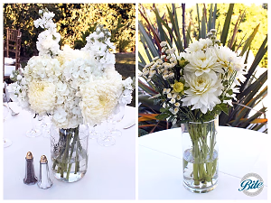 Tasteful client floral arrangements with mixed white flowers