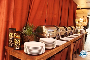 Buffet setup for UCLA alumni Dinner with 12 Strangers