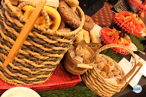 Buffet Display of Bagels and Muffins