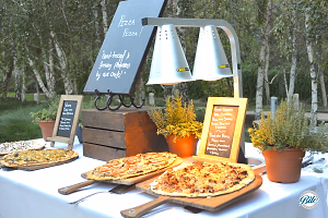 Pizza action station closeup on outdoor display ready for guests