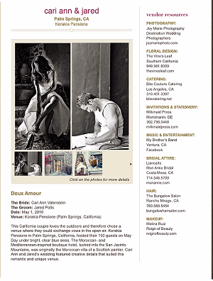Set against the backdrop of the Moroccan- and Mediterranean-inspired Korakia Pensione, Cari Ann and Jared’s Palm Springs wedding blended creative details with natural beauty. It was featured in this Elegala article