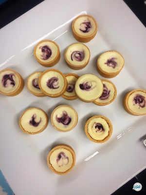 Cheescake Tarts with Mixed Berry. On dessert display.