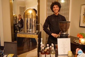Barista mans a fresh coffee station