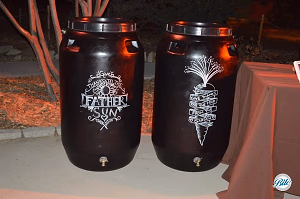 Custom signage on barrels by the bar
