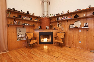 A cozy working fireplace in the west loft