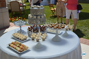 Dessert assortment including petite fours, french macaron, seasonal dessert shots and brownie truffle bites
