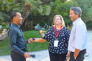 Staff passing appetizers with a smile