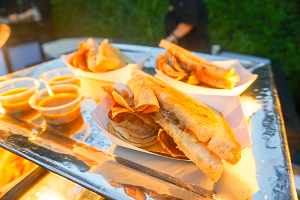 The Gouda be Kidding Me Sandwich. Beemster Gouda, Bacon, Caramelized Onion Jam. Grilled on Sourdough and served with chips.