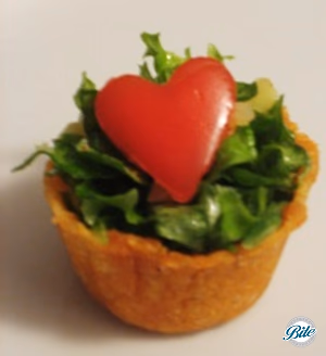 Mini cobb salad with parrmesean frico, chopped salad and roma heart topper
