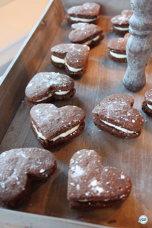 Chocolate whoopie pies cut into a heart shape