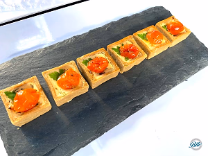 Tomato herb tarts on slate tray