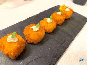 Mac n cheese bites. served with a truffle aioli