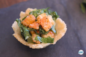 Mini Caeser salad in a parm cup with croutons and house Caeser dressing