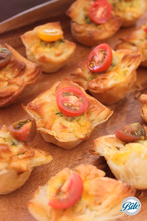 The perfect brunch bite, mini egg souffle with heirloom tomato