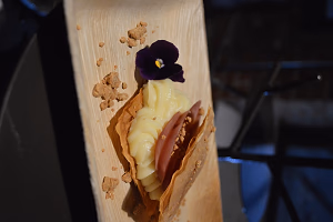 A show stopping chocolate-passionfruit dome dessert fora spectacular micro wedding meal finish
