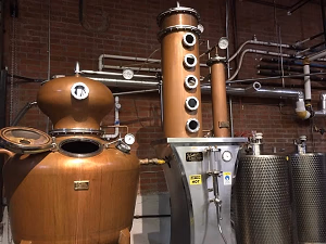 A pot still on the floor of the Greenbar Distillery. Check out the whole process by taking a tour!