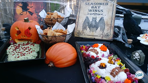 Halloween Display with Pumpkin Puke, Blood Skull, Devil's Eggs and Halloween signs and decor