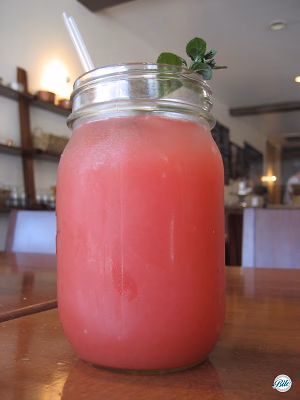 Fresh watermelon juice with herb garish