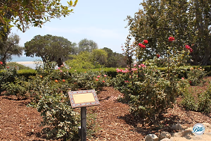 Rose garden overlooking the Pacific Ocean in Malibu at Adamson House