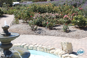 Closeup of rose garden from the fountain at the South Coast Botanic Garden