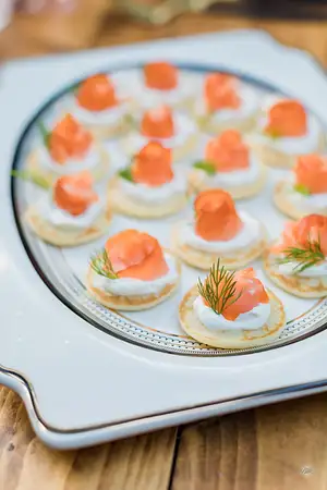 smoked salmon rose - homemade yeast-raised blini with creme fraiche and fresh dill