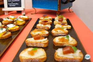 Spanish Manchego with Quince Paste Crostini for Funeral Menu at Torrance Cultural Arts Center