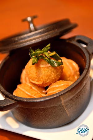Seasonal vegetable croquettes with saffron aioli