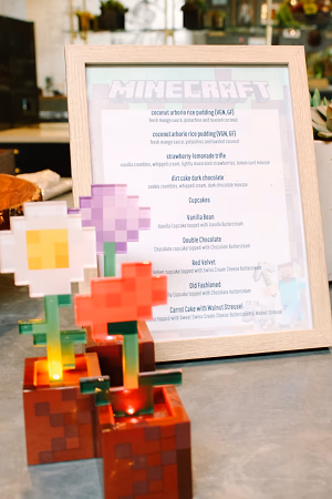 We adapted our sweet endings menu to give it a minecraft feel with an assortment of cubed desserts