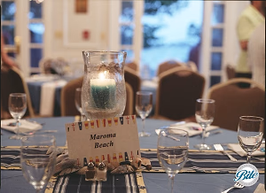 Nautical themed centerpiece with candle in hurricane vase