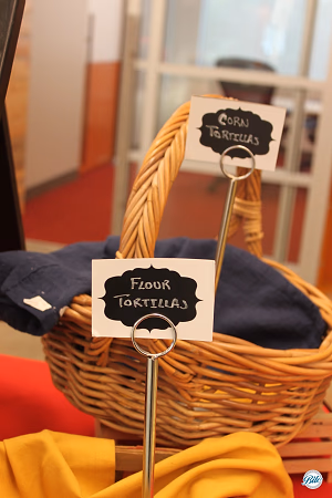 Flour and corn tortillas on buffet in baskets