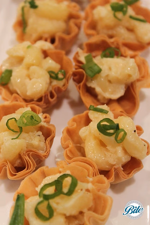Truffle Mac’n Cheese Served in Crisp Phyllo Cups with Brown Butter Panko