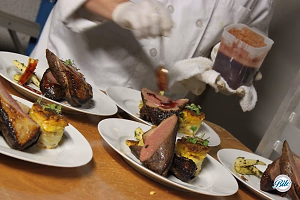 Behind the scenes! Adding sauce to the venison tenderloin