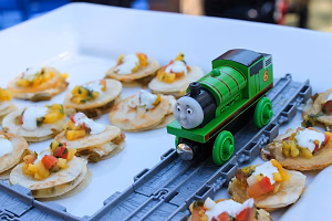 If you want to go all out, we'd love to go there with you. Any superhero, princess, sport, reptile (dragons, dinosaurs), game, toy, movie, or other theme is something we can start to dig into and take to interesting places with menu items and displays. For less involved events, there's the choice of food for the kids vs. the adults. We have comfort menus that look like they're for the kids but get raided by the adults, We can provide nice food for the adults and you can order pizza and popsicles and pouches for the kids. We have a flexible approach that takes into account the needs of a wide range of ages and preferences.
