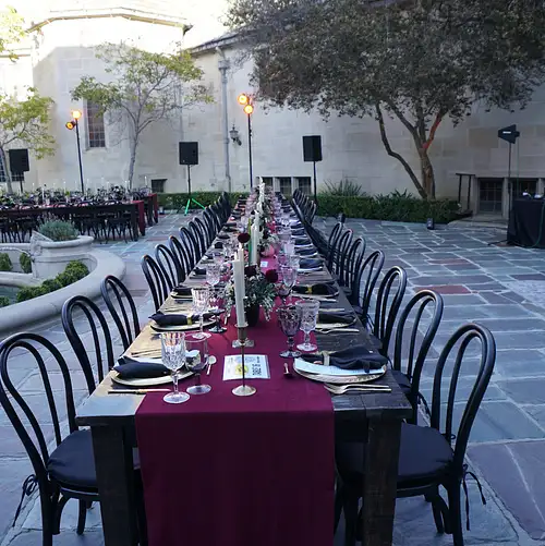 • Gardens and Courtyard: Expansive terraces, formal gardens, and a central courtyard can accommodate ceremonies, cocktail hours, or seated dinners. Guests typically enjoy lush landscaping, fountains, and panoramic views of Los Angeles.